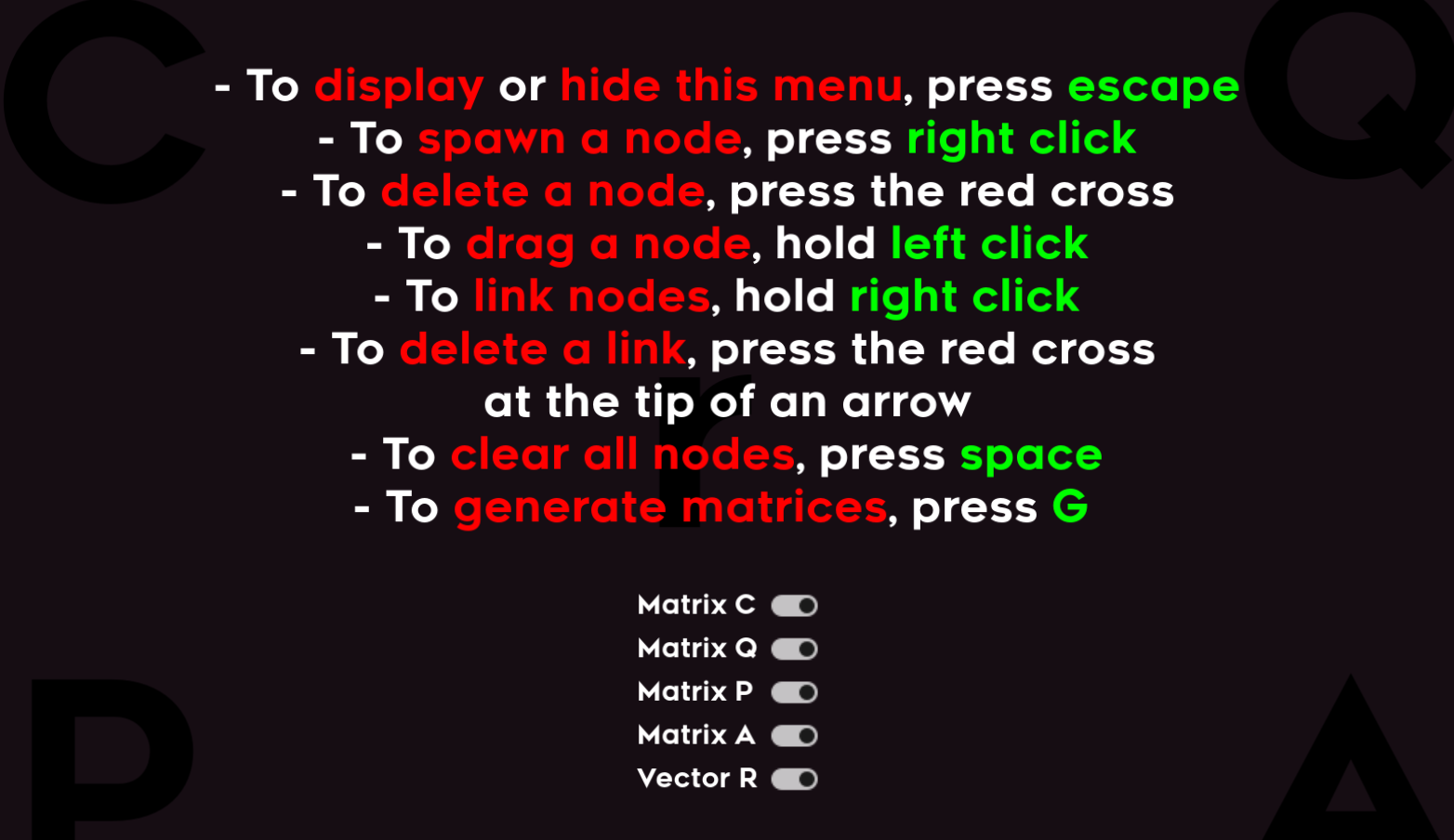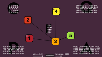 A simple implementation of the PageRank algorithm. It is an algorithm used to rank web pages, for example when you search on Google. You can manipulate nodes (websites) and links (each website links to different websites). It represents a web structure, and you can press "Generate" to see which websites are ranked the highest.